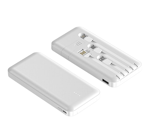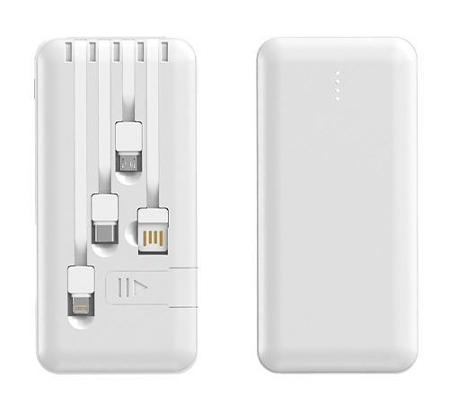 Powerbank 10.000 mAh, 4 Built-in Cable. Powerbank multi-kabel dengan dudukan perpaduan sempurna antara kekuatan, multifungsi dan kenyamanan.