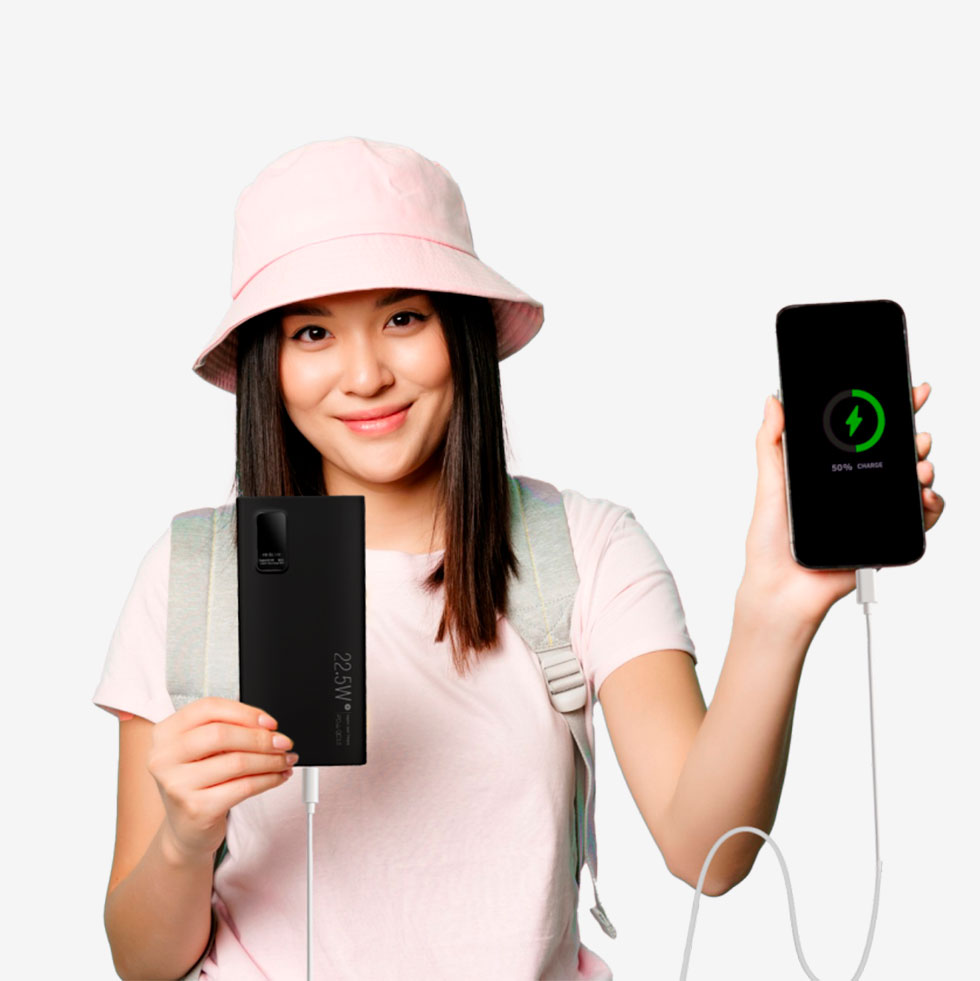 Powerbank 10.000 mAh, Ultra Fast Charging. Nyalakan perangkat Anda dalam hitungan menit rasakan kecepatan pengiriman daya 22,5W.